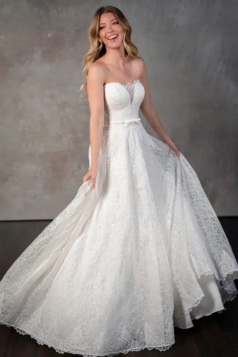 Whether you're planning a traditional church wedding, a rustic barn celebration, or an elegant ballroom affair, the D4191 adapts to various wedding themes. Its timeless design ensures it remains relevant and stylish across different settings and seasons. The gown's classic elements provide a solid foundation, allowing you to personalize with accessories that reflect your unique style.